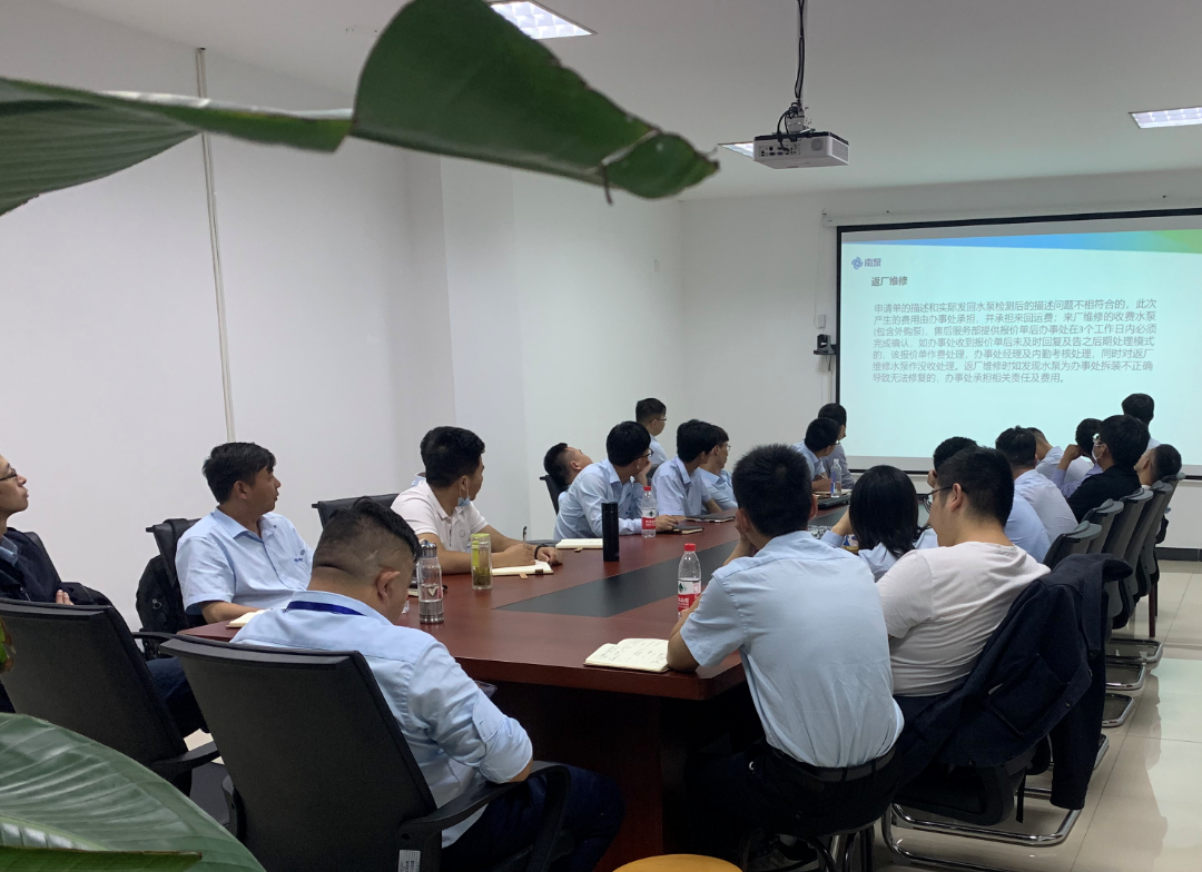 因此,我們第二次召集了華東大區(qū)進(jìn)行了為期一周的售后培訓(xùn)。此次課程涉及到了水泵的介紹及應(yīng)用、售后服務(wù)流程制度、差旅費(fèi)的講解、水泵零部件爆炸圖以及故障原因分析、水泵的拆裝操作及考試。